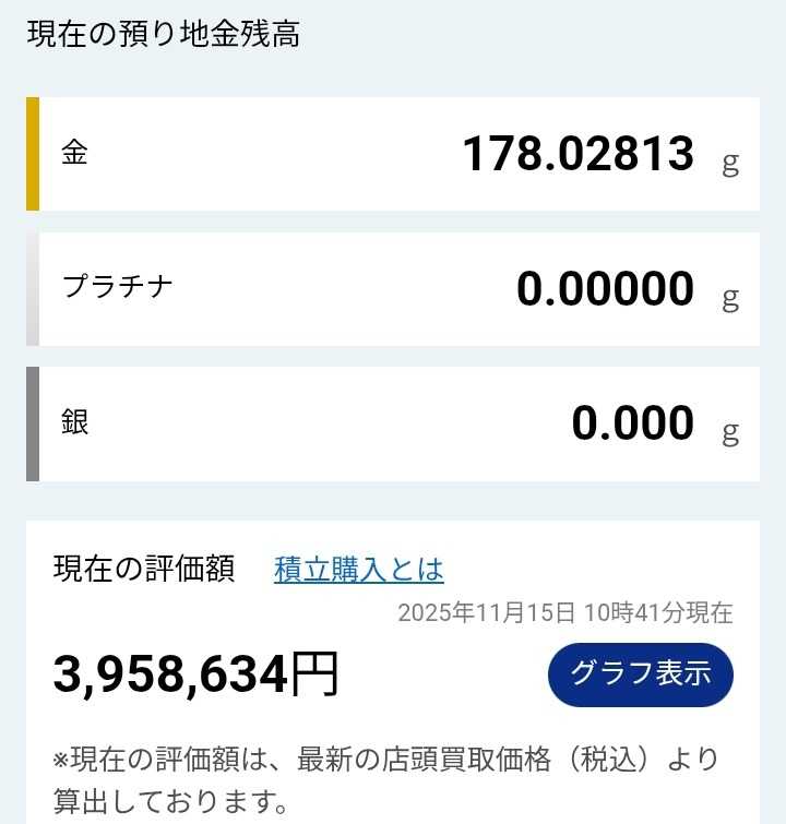 金関連商品の口座残高が約1388万円に増加… 2025.10.18