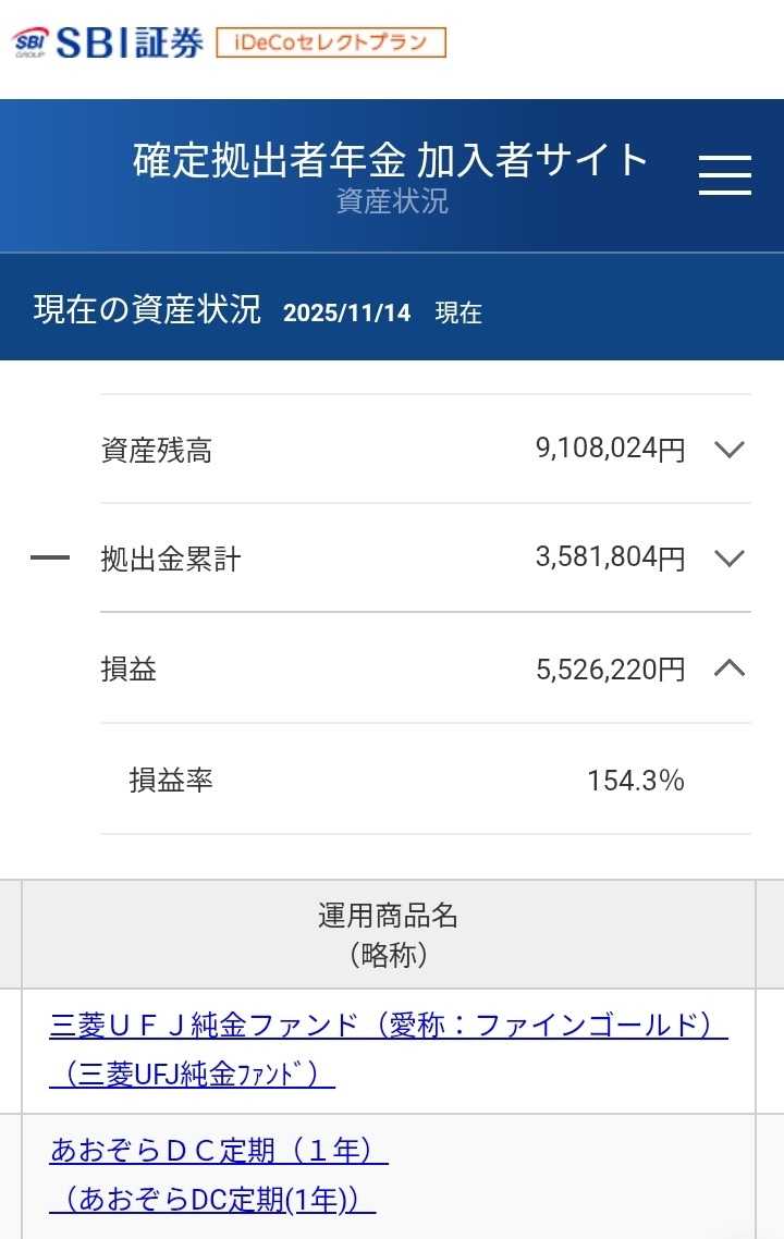 iDeCoの口座残高(ファインゴールド)は、約910万円、