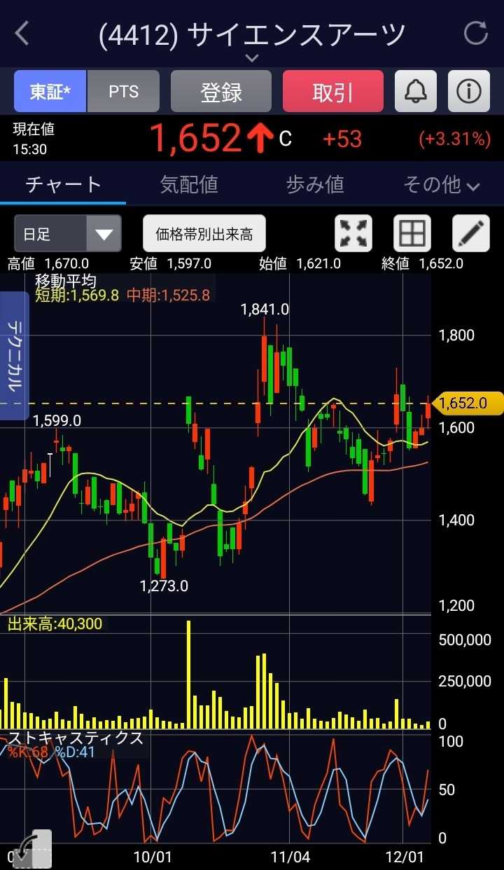 ⬇サイエンスアーツが上昇したので日本株資産増加⬇