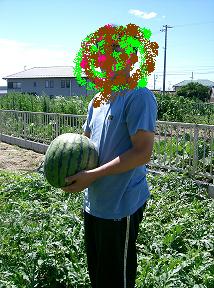 初めてにしては なかなかのもの でしょ。 うちの庭で 取れた スイカです。まだ あと10個近くは 出来るはず。 ちょっと 種は多いけれど 味も 結構 いけてます。 きょうも レッツスピークYour cell phone won't get any reception here.「携帯は ここではまったく 受信できません。」