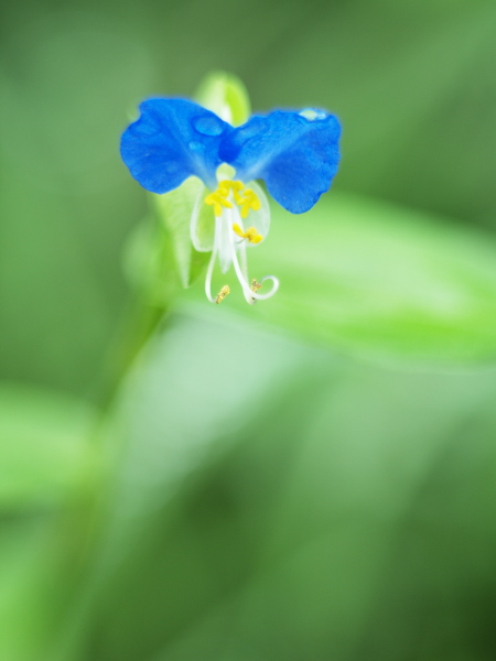 今日は一日どんよりした天気で、早朝少し雨が降ったようですが日中は雨が降ることもなく曇っていました。今日もOLYMPUS E-420にRICOH XR RIKENON 50mm F2をつけてお昼のお散歩に。足もとの草は水玉がたくさんついていて、草むらの中にぽつりぽつりと咲いているツユクサの青が、やわらかい曇り空の下で「ぼぅっ」と光っているようでした。