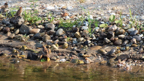 昨夜、7777アクセスを通過しました。たいしたことのないこのブログに、かくもたくさんの方にお越し頂きありがとうございます。最近は、なるべく毎日日記をつけるようにしており、ようやく開設以来全体の日記投稿率が30%を越えるようになりました。だいたい1日平均20ビューくらいあるみたいです。まったく無視されているわけではないようで、ちょっとうれしいです。今朝は久しぶりにOLYMPUS E-620とZD 70-300mm F4.0-5.6ズームレンズの組合せで出勤前の広瀬川探索。カワセミも二個所で遭遇。2枚ほどシャッターを切りましたが、いまいち・・・サギさんも、じっとしているときに何枚か撮りましたが、別のほうへカメラを向けている隙にザバッと魚を取って飛んでいってしまったり、なかなかのいいチャンスをことごとく逃す残念な日になってしまいました。さて、今日の一枚は・・・スズメさんです。ちょっと距離があったので、写りが小さいです。この写真では16:9の縦横比、2048x1152枠でトリミングしたものを480x270にリサイズしています。広瀬川をさかのぼり、愛宕橋の手前にある中洲のあたりにさしかかると、たくさんのスズメがこちら側の川岸と中洲の間を行ったり来たり、忙しく往復していました。向こう側の中洲を見ると、何羽か水浴びしていました。・・・今朝はたいした成果がなかったので、こんなものしか掲載できません。