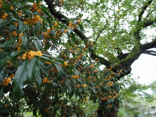 9月28日(水)普段、よく東北大学片平キャンパスの学都記念公園を横切って歩きます。今日もいつものように歩いていると、強烈な(?)香りが。by OLYMPUS XZ-2キンモクセイの花でした。目で確認する前に、鼻で分かるその存在。かなりいい香りでした。by OLYMPUS XZ-2