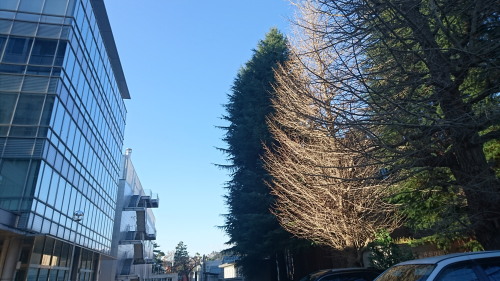 12月9日(金)11月26日から一昨日まで、長丁場の出張へ出ていたため仙台を留守にしていた間に、季節はけっこう先へ進んだようです。11月25日の日記で取り上げた、東北大学片平キャンパスのイチョウの木。そのときはまだ葉を落としている最中でしたが、それが今日見てみたら・・・by Sony Xperia Z5 Compact SO-02Hすっかり葉を落として、冬らしい姿に。ビルのスキマから差し込む朝日に照らされて、白く光る枝が一層映えます。空は快晴。でも、それほど寒くないです。