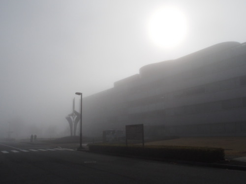 12月7日(水)朝10時、24時間の実験がなんとか無事に終了しました。帰りのバスを待つひととき。あたりはby OLYMPUS XZ-2こんな感じでした。朝靄というにはあまりにも深い。とりあえず、およそ10日ぶりに仙台へ戻ります。