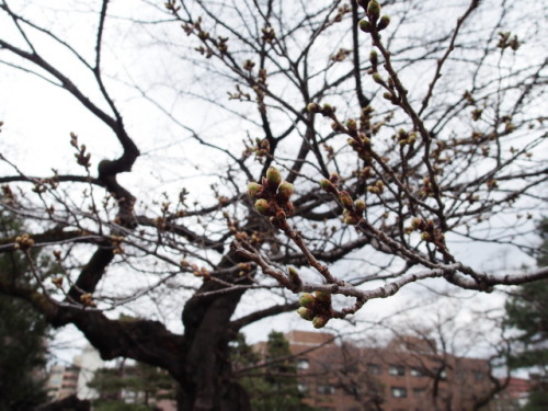 3月31日(金)今日も、けっこう気温が高めの仙台。空は一日中どんよりしていましたが。昨日の日記で、梅の話題を出したから・・・ということではないですが、今日は桜の話題です。仙台の開花予想は4月7日、そして満開は14日という予想。この予想によれば、まだ咲き始めの一週間も前ということになるわけですので、桜の花なんてまだまだつぼみで堅いでしょう。と、東北大学片平キャンパス、学都記念公園の桜の横を通りかかったとき、枝のつぼみをよーく見てみたら、by OLYMPUS STYLUS XZ-2意外にも、けっこう膨らんでおりました。ちょっと暖かくなれば、一気に爆ぜて咲いてしまうんじゃないか?というくらい。いずれにしても、どんどん季節は進んでいるということですね。今日で3月も終わり、ということは平成28年度が終わって、明日からはいよいよ新年度です。