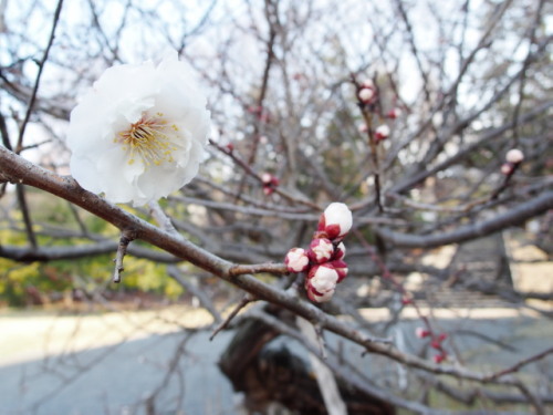 3月2日(木)仙台では2月20日に梅の開花宣言が出されたそうですが、なかなかパーッと咲いている梅の木が見つかりません。そしてなにより、市内の何カ所かにある臥龍梅(がりょうばい)の花が早くみたいです。片平公園にも臥龍梅があるのですが、ここは例年花の咲く時期は遅めです。2週間ほど前の2月22日にも見に行っているのですが、まだ開いている花はありませんでした。もうそろそろ、ちらほらと花が開いてきてもいい頃なんじゃないか・・・今日のお昼に見に行ってみました。by Sony Xperia Z5 Compact SO-02Hでも、前回見たときとほとんど変わってませんでした。なんと暖かさに鈍い梅の木よ。しかし、過去にはこの臥龍梅と、同じ公園内の桜の木が同時期に花を咲かせて、かなり楽しむことができた年もあったので、梅の花が遅いからといって文句を言っても仕方ないですね。さらに遡ること約1ヶ月、2月1日にはすでにいくつか花が開き始めていた放送大学宮城学習センターの白梅の木。そちらはどうなっているかと見に行ってみたら・・・by OLYMPUS STYLUS XZ-2こちらは前よりさらに進んでいました。まだまだ満開は先のようですが。これからもしばらく、お昼のお散歩で楽しむことができそうです。