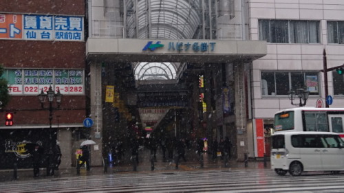 3月15日(水)昨日は、夜にみぞれになるかも・・・といわれましたが結局雨。今日も午前中は雪との予報、半信半疑で家を出れば・・・半分雨で半分雪というような塩梅でした。自転車、そしてタイヤを交換してしまっている車での出勤はあきらめ、JRで。そしてJR仙台駅からアーケード街伝いに片平を目指します。信号待ちのあいだに一枚。by Sony Xperia Z5 Compact SO-02H思ったより降りました。東北大学片平キャンパスの景色は・・・こんな具合に。お昼には雨交じりの雪も止み、ちょっと天気もよくなったりして落ち着きました。3月のこの時期に雪というのもちょっと困りものです。