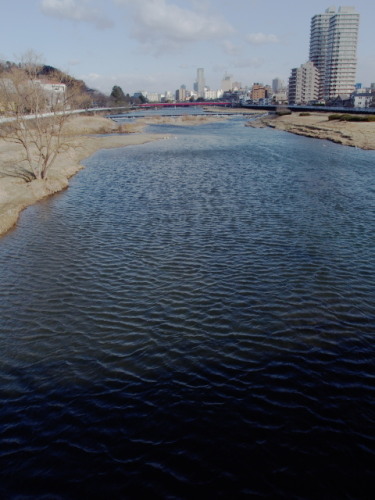 3月22日(水)昨日の雨はすっかりあがって、朝からよく晴れいい天気になりましたが・・・問題は強烈な風。晴れの天気も、典型的な冬型の気圧配置によるものですので、致し方ないところではありますが。こうなると、自転車での出勤はかなり過酷です。終始強い向かい風を受けることになりますので・・・なんとか広瀬橋までたどりつき、広瀬川を見てみたらby OLYMPUS STYLUS XZ-2普段は穏やかな川面が、強い風で波立ってます。自転車を降りてこの写真を撮ってたら、自転車はみごとに風で倒されてしまいました。日中も、びゅーびゅーと風が吹きっぱなしでした。