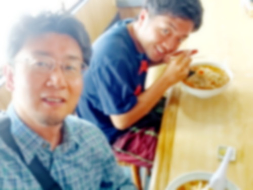 ツーショットのセルフィを撮るのに手間取ってしまって、「早く、早く!麺が伸びてしまいます!」慌てたために、手をつける前のラーメンの姿を撮ることをすっかり忘れてしまいました。
