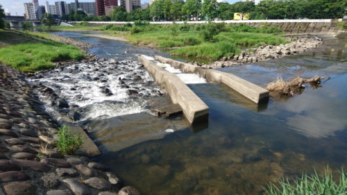 すっかり干上がっていた郡山堰も、少し水量が回復していました。