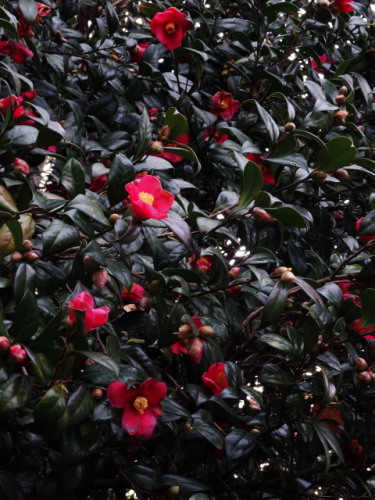 天気とは関係ないですが、七郷堀にかかる小さな橋、聖願寺橋の脇にりっぱなつばきの木があり、赤い花が咲いていてきれいです。