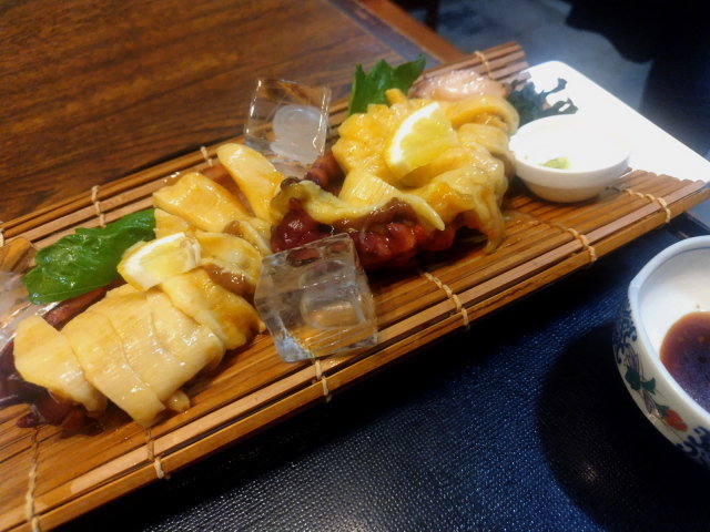 今日のホヤ刺しは宮城産のものでしたが、お屋形曰く、刺身には岩手産のほうがいいんだけどな、とのことでした。