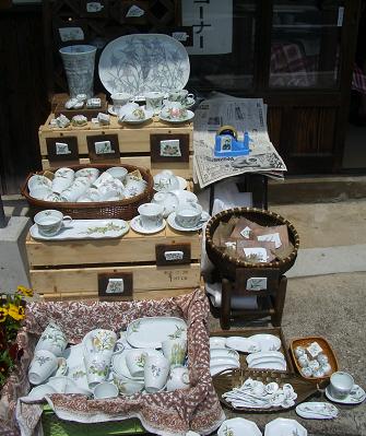 今日は遅刻せずにちゃんと電車に乗れましたよ~♪久しぶりのMR松浦鉄道です全国でも唯一、第三セクター式での黒字のMR鉄道久しぶりでした。↑が今日の町の中の様子。この近くでお店だしてます。↓がその私の小さなお店 ほんと小さいでしょう・・・・でもこれが一般のお家とかで借りると何万円~何十万円のスペースになるのです。組合員でよかったと思うのでした。。今日はね昨日より気温が高い上にお客さんの層が昨日とはまったく違い、買わない団体さんという感じでした。でもほんとに、団体さん多かった。観光地でよく見かける、あの同じツアーのマークのバッジやリボンそれをつけた人たちの波が行っては去り・・・時間が制限されるので、あまり買うというより観光地めぐりのそぞろ歩き。午前中は暇すぎるし日が差して暑いはで、頭ぼんやりでした・・・・・午後からはどうにかお茶碗目当ての方々が増えたようでどうにか、売り上げもありましたよ5時になると公共施設と言うこともあり他より早めのお片付け。。直後にお嫁ちゃんから電話が入り、母の所へ行くので実家にはルネだけがお留守番させてるのでどこにも寄らずに帰宅してねの連絡・・・・お隣の師匠のお店も片付けられて、迎えに来る師匠の車に私も便乗させていただいて最寄のMRの駅に置いてきたマイカーのところまで送っていただきました。で、帰宅してからの↓ルネです。。母愛用のドーナツクッション(なぜか豹柄)がお気に入りのルネ。。。さて、明日は午前中用事があり午後からのお店。。でも、在庫でず~と残っていたのをかなり安くしてるもんで売る物がちょっと足りなさそう・・・・面白い物で、数がなくなると売れない。。。ごちゃごちゃした籠の中から掘り出す楽しみがなくなるのでしょうね。。明日朝早くの、車が通れる時間に少し持って行こうと思います。