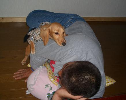 昨日は甥っ子の長女「ゆりかちゃん」の1歳のお誕生会を両家揃ってしたんですよ。画像はケーキのろうそくをお父さんと消してパチパチパチとみんなからのおめでとうににっこりの所です。餅踏みと言う行事があって、お餅を踏ませた後、そろばん、お金、はさみ、などを置いて自分で取らせるということをするんです。餅踏みは、わらじを履かせてなのですが、今はあまりしないようです。ゆりかちゃんは、なぜかいたずらで置いた携帯電話を取りました。で、みんなのこじつけは将来コンピューター関係かな?と・・・・・その後みんなで鯛のお刺身の鉢盛りや鳥のから揚げなどの料理お寿司と皆で食べたり飲んだりして過ごしたんですよ。。↓の画像は、ビールでダウンのお爺ちゃんつまり私の弟にまとわりつくルネです。なぜか、トドにルネちゃんは絡んでるようです。。。。私は今の所、昼間はどうにか動けるのですが夕方からはその疲れからか、熱がやはり出るみたい。。。しばらくはこれが続くのかな?