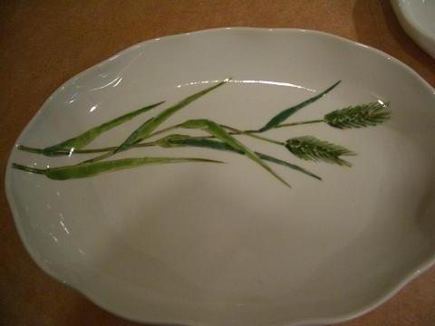 画像は、商店さんからの特注です。秋刀魚が入る長さのプレート皿とパスタ皿(画像ぼけていてすみません)雨が止んだ合間の午後に、届けてきました。しのえが麦をこういった形で書き始めて3年になります。最近定着しそうな「麦絵のしのえさん」(^^♪↑これは、甥っ子の結婚式の引き出物に作った麦絵の盛り皿(パスタ皿より大きい)自作のものは今の所焼き物団地の商店に1件委託で赤絵座には、少しだけ展示。まだまだ広がらない販路ですが、地道な売れ方をしてくれているのでがんばらなきゃと思うんですよ~♪駅前の商店に外注で麦絵は描いていますが形がまったく違っていますので自分の作品とまでは言えないのが現状です。せめてもに、後ろの銘は私のものを入れさせていただいての外注でのお仕事です。なにか一つでいいから、自分のイメージの作品があるという事の心強さを感じられています。でも、すこしずつ進化してゆく事を考えながら作品を作らなければ同じ内容では、先がみえてきますよね(^_^;)そのためにも、頭の中のアイデアを形にしなければとちょっと焦り始めました。。焦ると駄目だ~と言い聞かせながら今は、アイデアをまとめる時間と自分に言い聞かせています。。物を作り出すって、根気がいるねっ~!!!今日の激しい雷雨にそんな事を少しぼんやりと考えながら時間を過ごしたしのえです。