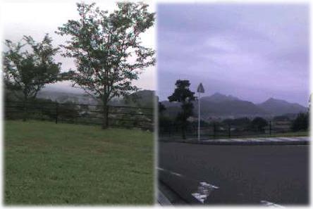 桜並木の一番上まで行くと地平線のように見える二つの町。