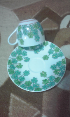 描きは、すでに書いてあるのですが、その線を消さないように乗せて行きます。全体に柄があるクローバーのコーヒーC&Sまだまた頑張りますo(^-^)o