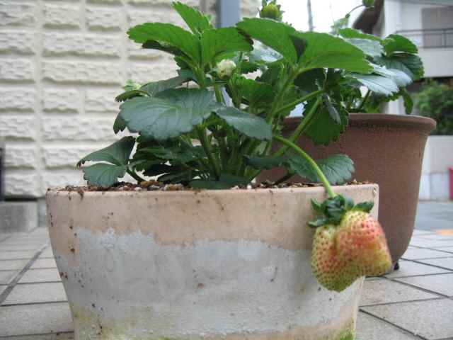 この間、お花屋さんの店先の「ハーブ」コーナーで ≪シナモンゼラニウム≫を見つけて、買ってきた。葉っぱを手で触ると、スパイシーで爽やかないい香りがした~もう、この香りは大好きな匂いなので、迷わずに決定お店のお姉さんとこの≪シナモンゼラニウム≫の香りについて「何かの匂いににてるなぁ~」ということで話してた。私は、『柑橘系(レモネード)にピリッとスパイシーな感じ』というが、お姉さんは、『これ、シナモンやで~』って。まぁ、私はシナモン単体の匂いをまじまじと嗅いだ事ないので、そんな表現になったんだけど~。そのうち、お姉さんが 閃いて 『トイレの芳香剤のレモンの匂いやなぁ~』確かに、そう言われてかなり納得これが、その新入りパート2の≪シナモンゼラニウム≫ちゃんまた、大きな家(鉢)に植えかえしたげるからなぁ~匂いフェチな私のお気に入りの一品が増えましたさて~、続きましては「イチゴちゃん」一日でここまで可愛くなるのんかぁ~『収穫』がそこまで近づいてきたよ~。パパさん、健康のために明日の朝から≪運動≫するんだってなんでもええけど、ぼちぼち長いこと続けてほしと思うんです。仕事の加減もあると思うけど、なるべく長いこと続けられますように明日、朝4時頃に起きる予定にしてました。パパさん頑張ってね~。目覚まし鳴ったら、スグ起きてね~。何回も鳴らさんといてや~。(ちょっと、冷たかった~?)でも、「おかん」はパパさんが寝てからも、まだ 片付けとかあるしスグ寝られへんから、そ~っと起きて頑張ってなぁ~。自分起きたからって 『おはよう』言うなよ~。頼むで~。明日か明後日には、『おはよう、イチゴ』できるかもね~。本日のトリでございます。これ、何の木やろか~?私には、水筒とか哺乳瓶洗うタワシに見えるんやけどなぁ~。なんか、かわいいやろ~。アップで見せたろかぁ~。やっぱり、タワシの木やんか~この木の本名って何やろなぁ・・・。新発見と思たけど、隣のおばちゃんとこの畑に植わってるっちゅうことは・・・。前からあったんかいっ・・・。まぁ、ずっと前からあったにせよ、こんなおもろい木 見れてよかったよ~。さぁ、もう そろそろ寝るで~