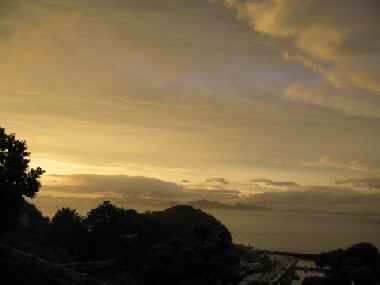 昨日は久々の嵐やった。夕飯を作ろうと、部屋から出たら 窓からきれいな黄金色の光が射してたほんで、外を見てみたら、雨上がりの曇り空と晴れ間がきれいに入り組んでいて雨に洗われた空気が澄んでいて、とても幻想的な風景だった しばらくは、その奇麗さに見とれてたけど デジカメ持って撮って見たこんな奇麗な空、久々にみたなぁ~。こんな雨も久しぶりだったなぁ~。ず~っと空を見渡してたら うっすらと ≪虹≫ 出てたよほんと、昨日の空 奇麗やったなぁ~
