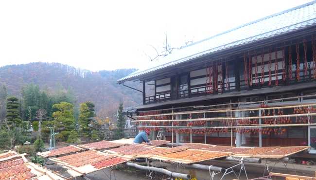 この時期の風物詩(11~12月)山梨 枯露柿の里粉を吹いたようなのが良品だとかアルバムからの写真です枯露柿の一つ一つを裏返しこの時は 1個500円ぐらい? で食べた記憶がありますが今頃は❓ いくらになっているのかしら凄く大きくて美味しかったわ