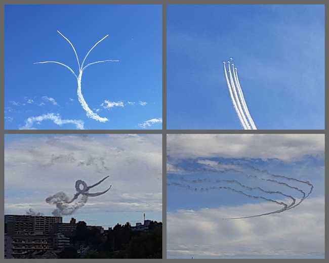 入間基地 航空ショー 毎年11月3日朝からいつもと違う飛行機の音が聞こえます今年は午前11時からのショー雲が少し出ていましたが途中から青空になりましたすばしっこい あっという間に小さくなり見えなくなります「何処だ? 何処だと?」 あちらこちら見回していると「あ! あそこだ!」 急上昇したり急降下したり...... 青空に描く星型文化の日 ☆ ♡ グルグル巻きこんなに接近 ✈ ✈ ✈「ビュー」っと飛び去ります