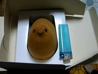 会社でおみやげをもらいました。一人一個。特大ひよこ。佐賀土産かな。 でかいです。そして可愛い。かな。アザラシにも似てるか。家に帰って「大きいひよこもらった」と行ったら、それは「にわとりやろ」といわれた・・・。半分にしてみた。 怖い。ぱたん。