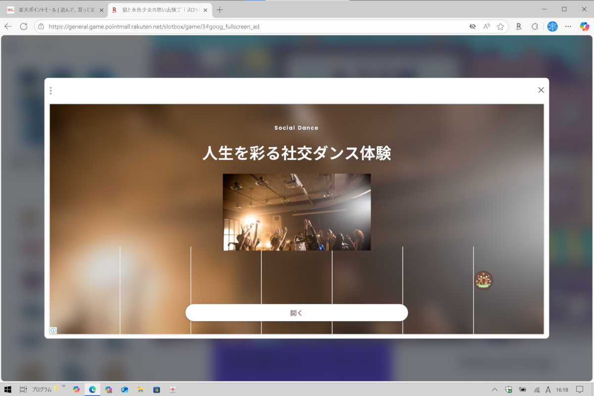 画面中央にポップアップが
