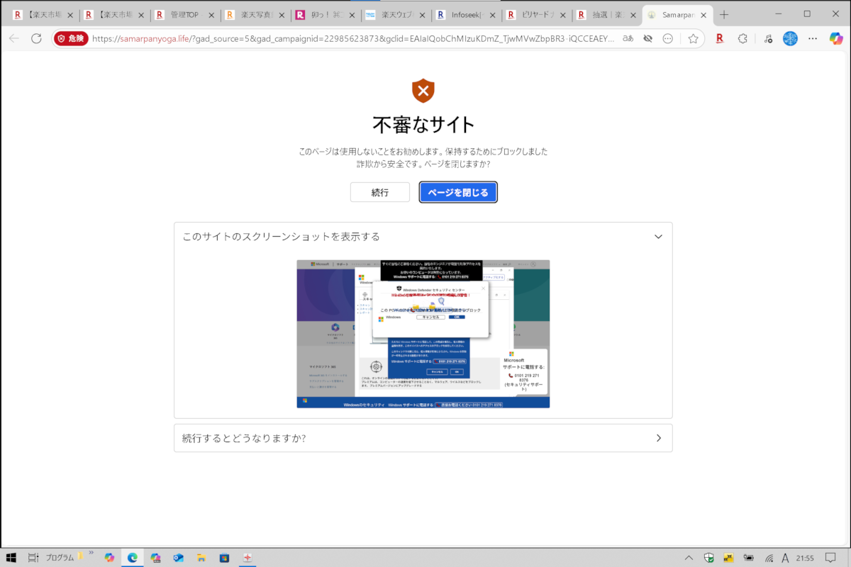 それを閉じようとすると偽のセキュリティ画面が