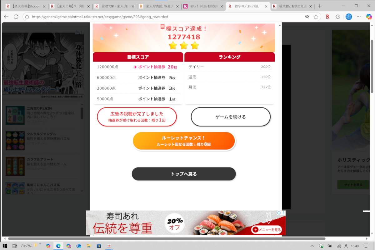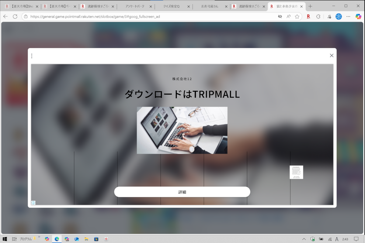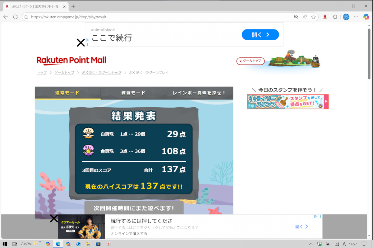 ※「ポイントを獲得する」ボタンを押すと広告が表示されます。