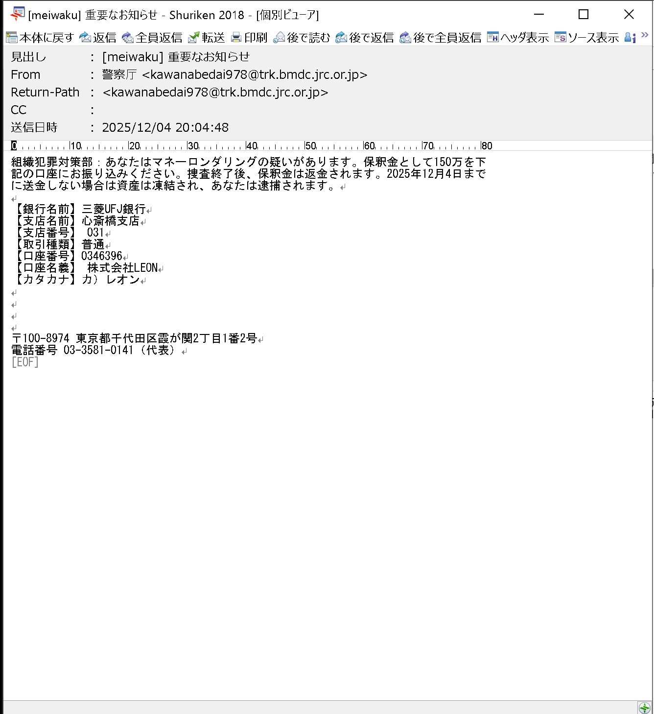 詐欺、フィッシング:宝くじ公式サイト特… 2025.12.01