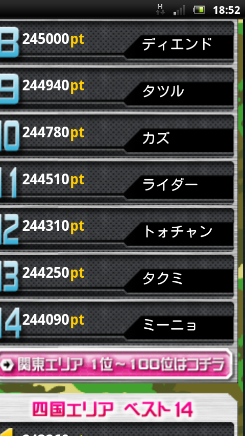 のままスコアタをかいし、やりはじめて10数回目に243190を出し、その時点で関東暫定7位、でしたが前回同様日に日に順位は下がり残り一日というところで既に圏外の17位。