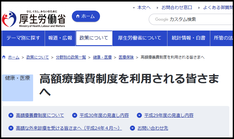 こん○○わ! 白たぬです。前回のブログ記事【番外編】前略、白たぬ大腸がんになる。vol3の最後にお伝えの通り、高額療養費制度について調べたことをまとめていきます。制度の前に気になること、それは...この後の診察・検査・手術でだいたい幾らくらいかかるのか?です。次回診察予定のM赤十字病院では、CTスキャン、大腸内視鏡検査などの検査を行った後、腹腔鏡手術で腫瘍を摘出する様です。・患部のCTスキャンにかかる費用相場は、1万2,000~2万7,000円です 。 医療保険制度による窓口負担の目安は、自己負担割合が3割の場合は6,000~8,000円程になります。・内視鏡検査にかかる費用は、Mクリニックでかかった費用(検査食、薬代、検査代)で、自己負担額は3万円程です。・腹腔鏡手術にかかる費用相場は、10〜20万円未満が最も多く、全体の平均額は19.8万円です。 自己負担額は、開腹術で約5万円、腹腔鏡で約12万円です。手術代がかかる費用のダントツ一位ですね。ここで高額療養費制度を適用すると、給与所得者は約8万円の負担額となり、それ以上支払った金額は後日返金される様です。■では次に、高額療養費制度について、もう少し詳細に見ていきます。参考サイト:高額療養費制度を利用される皆さまへ |厚生労働省 (mhlw.go.jp)■先に、給与所得者は約8万円の負担額となり~と書きましたが、ひと月の上限額は年齢と年収によって区分されています。高額療養費制度を利用される皆さまへ(別ウインドウでPDFが開きます)白たぬは適用区分:ウに該当します。ひと月の医療費が267,000円未満であれば、80,100円が医療費の上限額です。■その他にお得な制度として、ひと月の医療費が白たぬ一人だけでは上限額に達していなくても、同一世帯の家族の医療費を合算して上限額を越えた場合に申請できるそうです。(世帯合算)■お独り様でも、1年で複数回上限額を越えた場合には上限額が下がるお得な制度もありました。(多数回該当)過去12か月とは何月始まりでも良いのか?4回目以降何回目まで上限額が下がるのか?新年度になるとリセットされることはないのか?など疑問は一杯です。とは言え、過去12か月で手術を4回もしない限りは、多数回該当の制度は利用しないので、利用する可能性は低いのでは?と思っています。■その他気になったこととしては、支給対象となる医療費の内容・種類についてです。上図の「また、患者が69歳以下の場合に~」を読むと、1回の請求が21,000円以上であることが書かれています。反対に21,000円未満の請求は支給対象から外れるのか?と思いましたが、世帯合算の説明を読むと、自己負担額8,000円や4,000円の請求も含めているので、おそらくは、1度でも1回の請求が21,000円以上であることが条件なんだと思います。あーでも69歳以下の場合は、21,000円以上の自己負担のみ合算される、と記載がありましたね。残念です。最後に、いろいろ検索していたらこんなものにたどり着きました。・内視鏡下手術用ロボット 「ダビンチ」ロボットアームを操作しながら手術をするそうです。直腸がんに対するロボット手術は2018年4月から保険適応になったそうですから、白たぬも、ダビンチに手術してもらうのかも、しれませんね。■現在までかかった費用年月金額概要など2024年5月5,380検査食、血液検査、問診など2024年6月27,160内視鏡検査、経過観察、紹介状作成合計32,540------