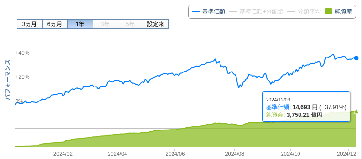 どうもこん○○わ! 勤務先でも老後の資産形成の啓蒙活動をしていて、先日、忘年会で同席した若手社員に、「資産形成、やってますよ」と言われ、なんだか嬉しい、そんな白たぬです。50代からではなく、30代、20代から少額でもいいので積み立て投資するのはとても良いことだと思います。投資金額は少額でも、時間が味方してくれますからね。さてそんなことで、2024年のほったらかし投資の結果報告です。【Step7】投信信託の積み立て設定する ~後はほったらかし~ の記事から半年後、それぞれの銘柄はどうなったのでしょうか、さっそく見ていきましょう。1.全世界株式(楽天証券)(楽天証券より引用)積立期間:2年(2022年~2023年)ほったらかし期間:1年(2024年)2年間積み立てて、その後1年ほったらかしの運用で58.31%の収益です。半年前(41.94%)に比較して、16.37%も増えてます。2.全米株式(楽天証券:楽天VTI)…ここから金額は伏せます。(楽天証券より引用)積立期間:9カ月間(2022年9月~2023年5月)ほったらかし期間:1年半(2023年6月~2024年12月)9か月間積み立てて、その後約1年半ほったらかしの運用でも78.77%の収益です。半年前(52.79%)に比較して 25.98%も増えてます。このペースで行くと、2025年の6月には100%の収益となりそうです。それにしてもアメリカ経済の勢いが半端ないですね。3.S&P500(auカブコム証券 → SBI証券)(SBI証券より引用)積立期間:1年(2023年)ほったらかし期間:1年(2024年)auカブコム証券(2025年2月1日より三菱UFJ eスマート証券へ社名変更)からSBI証券へ移管してきたS&P500です。1年間積み立てて、約1年間ほったらかしの運用でも65.15%の収益です。半年前(42.1%)に比較して 23.05%も増えてます。アメリカの主要500社よりも全米の約4,000社へ投資した方が結果が良かったのは、500社以下のアメリカ経済が底堅いからなのでしょうか。4.全米株式(SBI証券:SBI・V・全米株式)(SBI証券より引用)積立期間:1年(2023年)ほったらかし期間:1年(2024年)1年間積み立てて、約1年間ほったらかしの運用でも63.09%の収益です。半年前(39.37%)に比較して 23.72%も増えてます。こちらもS&P500より成績が良かったです。全米株式は中小型株にも投資するので分散はされるものの投資妙味が薄くなると言われてましたが、今年は500社以下の会社の伸びも享受できた、ということなんでしょうか。以上の4銘柄は追加投資せずにただ保持していただけです。持っているだけで資産価値が上がるのはとても不思議ですね。ちなみに新NISA元年の1年間の運用実績は、12月25日に約定したオール・カントリーが受け渡しされる、年明け1月6日以降になりそうです。皆さんの投資の第一歩の助力となりましたら、嬉しいです。