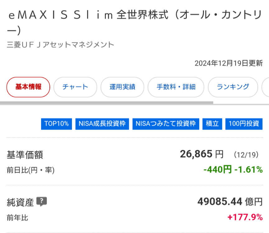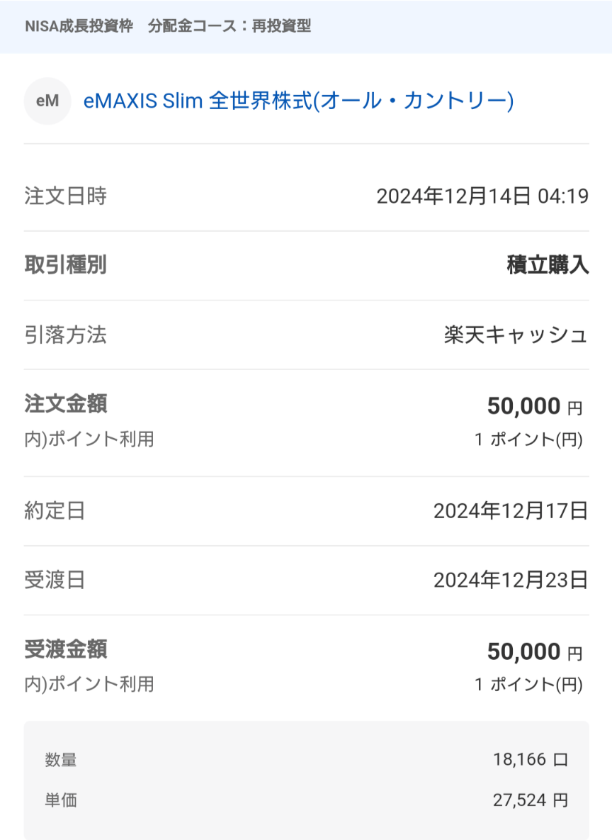 24日注文分が約定されたら、年明けには新NISA1年間の成績報告ができそうです。