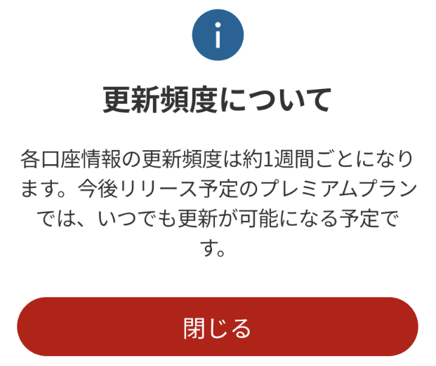 日々の入出金の 更新が1週間ごと なのは家計簿アプリとしてはちょっと微妙だなぁと思います。