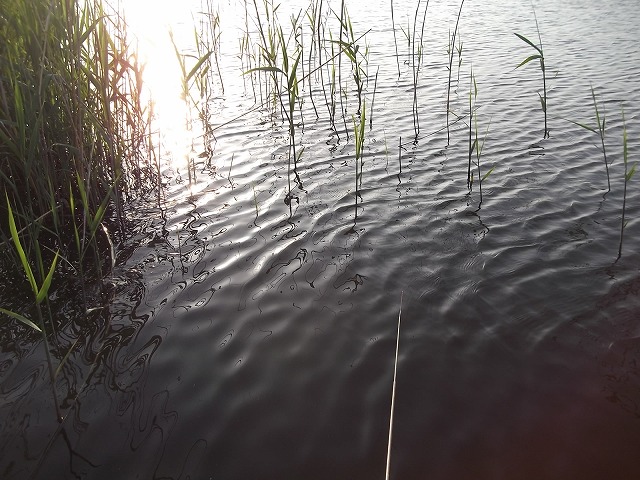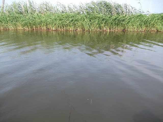 夕方にマブナ釣りに行きました。雨上がりで、気温も上がったので条件が良いのでは・・と思ったのですが、イマイチでした。ホソの水面が泡立っています。これは魚が泡付けたのではなく、カワウが潜水した痕跡です。カワウが入ると、魚は完全に散ってしまいます。カワウは縦横無尽にしつこく潜水して捕食するので。最初に釣れたのは50cm級のコイでした。道糸0.8号の仕掛けでしたが、竿が硬いと何とかなるもんですね。オープンエリアにはマブナが居ないと悟ったので、葦の中のクローズエリアを丹念に探り歩くことにしました。カワウが来ない葦の中に避難しているということです。葦の中は水深がないので、サイズは期待できないです。やたら飛行機が飛んで来ます。自衛隊が訓練飛行しているとのこと。