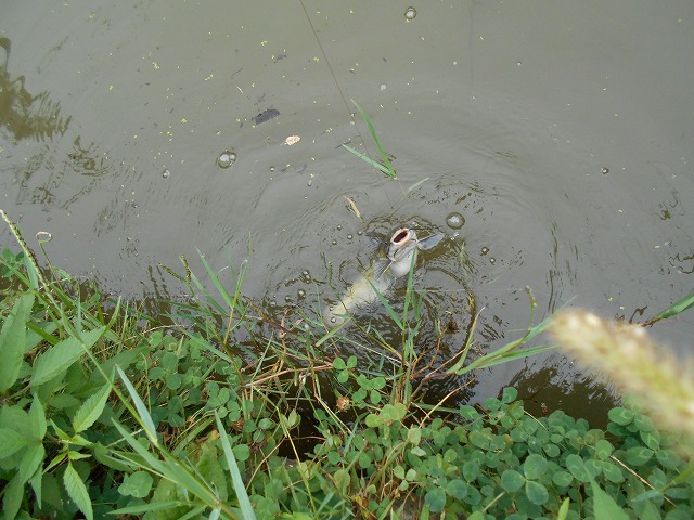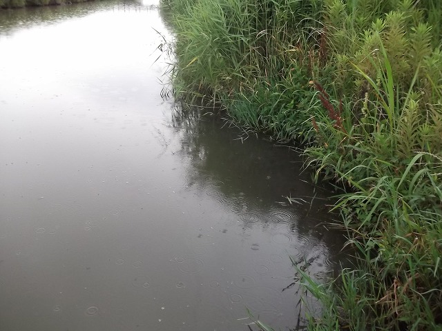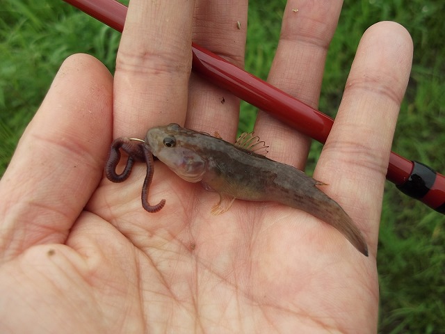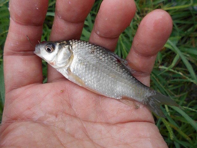 日曜日の夕方、雨が上がったので釣りに行きました。かなりの雨だったのでどこの川が流れが速く釣りになりません。釣りができそうな縦ホソを探します。マブナが群れで泳いでいる縦ホソを発見し入りましたが、浅いのでプレッシャーが掛かりエサに興味を示しません。エビが突いてくるのと、時々チチブが釣れるだけです。縦ホソの掃出し口の淀みのなかでブルーギルが釣れました。チンチン(クロダイの稚魚)に似ていますね。がっつり針をごっくんしています。残念ですが、マブナは居たのに釣れませんでした・・雨上がりなのでキジを使いましたが、グルテンの方が良かったのでしょうか。今日のところは釣りができただけで良しとします。