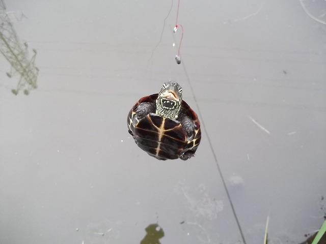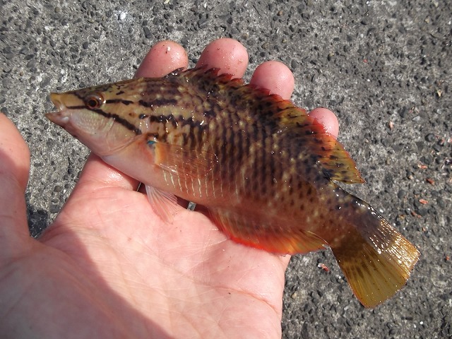 日曜日、ドライブへ行ったので漁港で小物釣りをしました。ベラの仲間でしょうか・・名前はよくわかりません。ハゼの仲間です・・名前はよくわかりません。フグです・・かなり怒ってます。タコです・・顔はかなり凶暴です。ハゼの仲間です・・名前はよくわかりません。たまには海の景色も良いですね。帰り道に休憩した道の駅の裏で釣ったマブナです。でかいカメも釣れました。