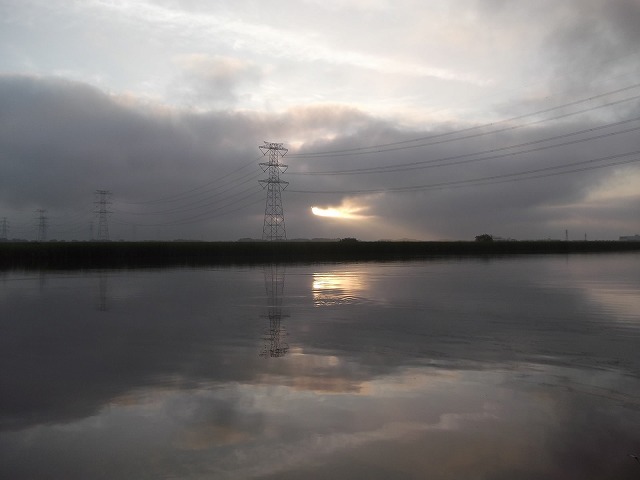 今朝のマブナ釣りです。昨日はアウェイで良い釣りができたので、ホームでも良い釣りをしたいところです。朝日を臨みながら、釣り場に向かいます。朝日を浴びると運と力が充電される様な気がします。今朝はホソに魚が入っている様子です。縦ホソから入りました。魚は居るのですが、水深が浅いので魚が逃げてしまい釣りになりません。次に下流に移動して横ホソに入ります。場所によっては濁りが酷いですが魚は居ます。試に竿を出しましたがアタリが出ないので、水通しが良い場所に移動します。水門まわりに入って、すぐにコブナが釣れました。この時期は鮒の居場所を探るのが重要なので、釣れない場合は思い切って移動することが大事ですね。続いて、泣き尺マブナが釣れました。雰囲気から良型が寄っている様子なので、針を袖3.5号から袖5号にチェンジします。やっぱり葦際2尺ですね。日なたでも釣れますが、日かげが出来ている場所が良い様な気が思います。これはコベラです・・エサがグルテンなのでヘラブナも釣れます。白子が溢れていました・・ちらほらハタいている場所もあります。早めに針をチェンジして正解でした。尺上34cmのマブナが取れました。やっぱりマブナの尺上は満足感が違いますね。立て続けに尺上33cmのマブナが釣れました。硬調八尺、五つ玉標準シモリ、道糸1.2号、ハリス0.8号、袖5号1本針・・良型の引き味を堪能します。今朝の釣果です。機場が稼働したのか、風向きが変わったのか、流れ始めたらピタリと食いが止まりました。短い時間でしたが、アタリが頻発して、良型をゲットすることができました。わが地元も他に後れを取っていないことを再確認できま、大満足の朝でした。こんな写真も撮ってみました。なかなか壮観です。