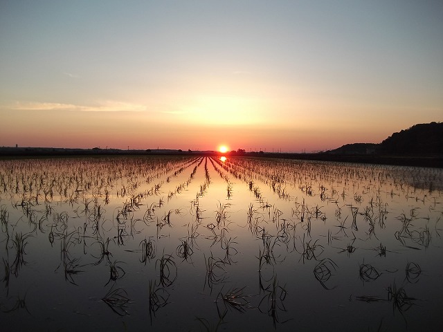 今朝のマブナ釣りです。今朝も綺麗な朝日です。マブナです。アヒルが現れました。白鳥とは違って、アヒルはかわいいなぁ。今朝の釣果です。田んぼのお米も順調に実っているようです。