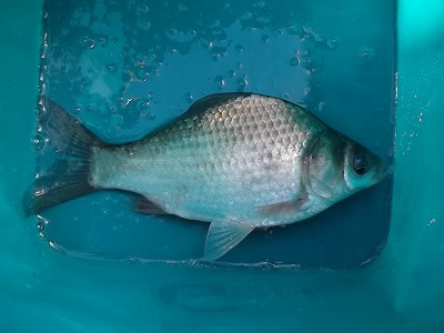 ひさしぶりの鮒釣りです。水の色が悪く期待できませんが、やってみました。小べらが1枚だけ釣れました。