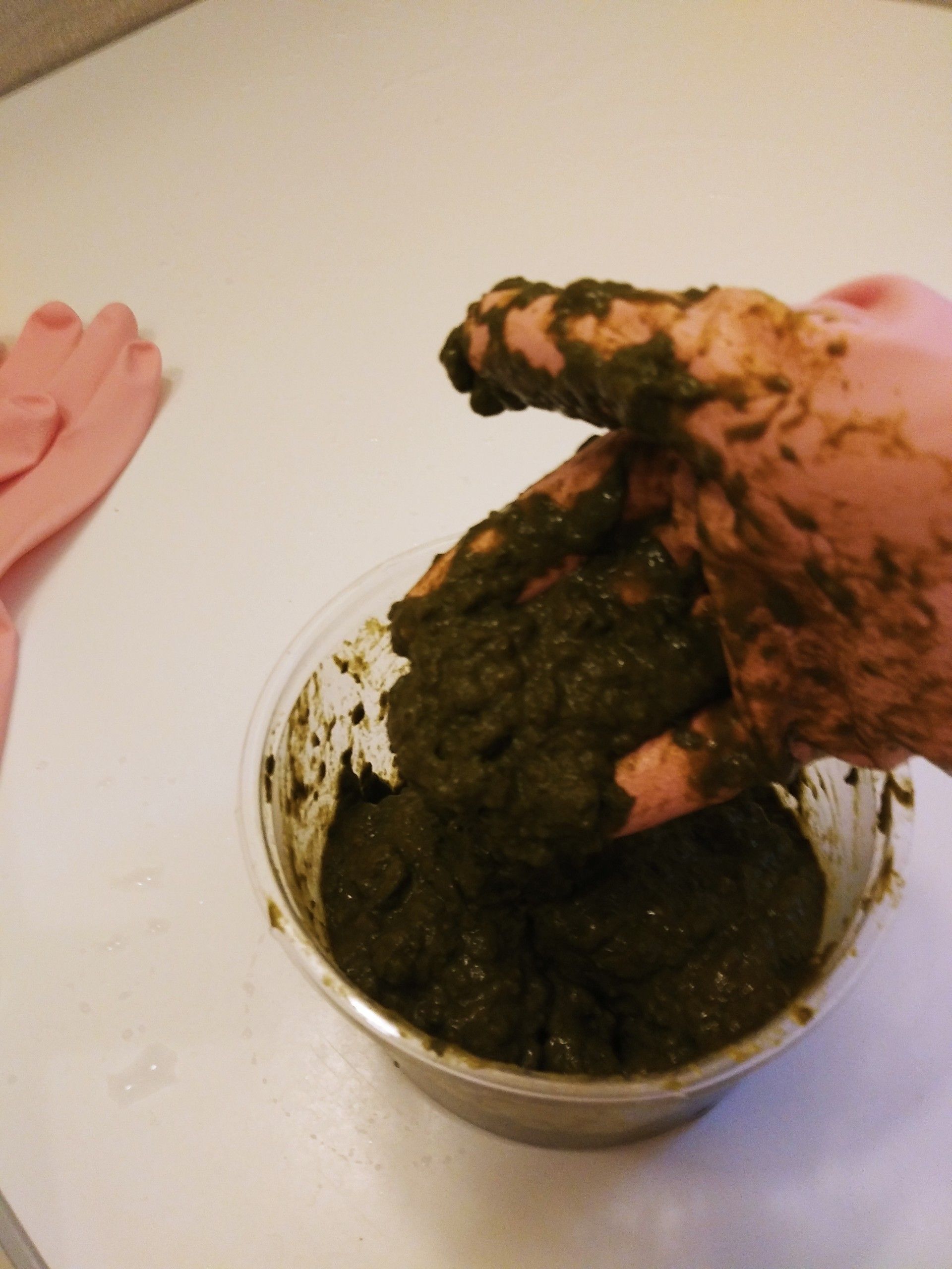 ゴム手袋でぐちゃぐちゃに混ぜて