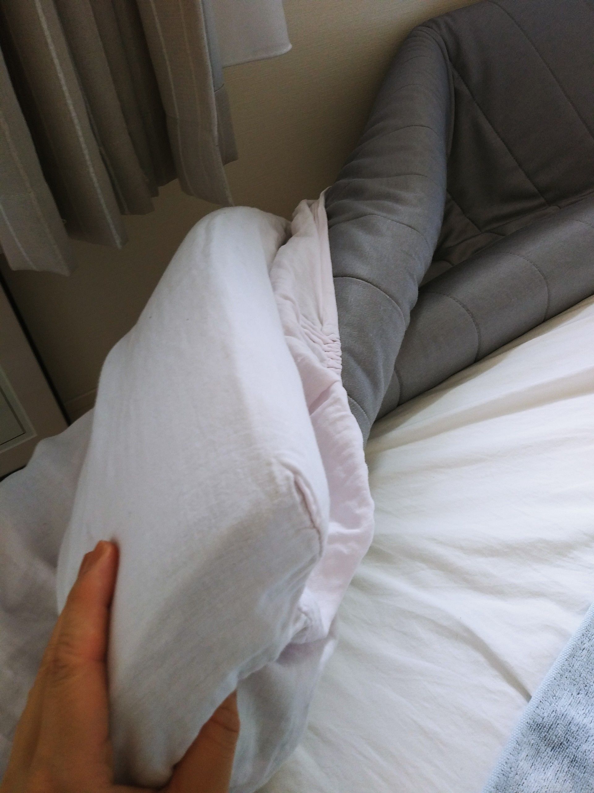 (上の写真のピンクのシーツが掛かっているもの)は外して寝ています。