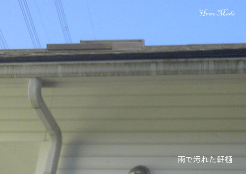 先日、夏のお客様訪問をしている時、屋根の鼻っぱしを横に走る軒樋が汚れているのに気が付いた。焼き付け塗装されたアルミ製の樋なので、劣化したりすることはないが、少々気になる。ここは、北下がりの大屋根。屋根勾配は、10対5.5。車が多く通る地域の幹線道路に面している。台風の際には雨の勢いが増すから、雨水がこの樋を越えて落ちているような気がする。また、空気が排気ガスで汚れているから屋根にその汚れが付着して、雨が降ると流れ落ちるのだろう。普段の雨では問題ないと思うが、もう少し樋の位置を外側に出すといった工夫も必要かも知れない。ただ、あまり出すと、今度は普段の雨で樋の内側に雨水が落ちるという恐れも出てくるかも知れない。それこそ、鼻隠しが傷んでしまっては本末転倒だもんな。メーカーに対して樋の幅を改善する要望なりをする必要があるような気がするなぁ。こういうのって、やっぱり温暖化の影響なんでしょうかねぇ。