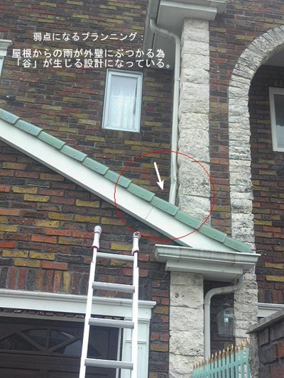 家づくりをするに当たって、最初に取り組むのが家のプランニング。家族の希望や敷地での制約、将来をにらんだ設計も必要となる。当然、お客様は見栄えよく見えるデザインにしたい訳なんだが、プロの輸入住宅ビルダーであるホームメイドとしては、将来起り得るトラブルやメンテナンスを見据えてプランをするように心掛けているのです。そういう点では、複雑な形より単純でリスクの少ないデザインになったり、勾配がきつい屋根より多少緩やかなものにして職人が安全に作業出来る状況を敢えて選んだりしますから、奇抜さに欠けると言われるかも知れません。ビルダーを選ぶ際に、他社さんのプランと比べるような人には私たちのデザインを面白味がないと言う人もいるでしょうから、一生懸命プランしたのに意味がなかったというケースもありました。でもねぇ~、だからと言って、私たちはポリシーを変えることはありません。そう、デザインは機能や自然の摂理と両立していなければいけないのです。今回、他社で輸入住宅を建てられた方から、ガレージの天井が雨漏りするので見て欲しいという依頼がありました。写真の家を建てた工務店さんは、既に倒産してしまったそうです。ビルダーの選定って難しいですよね。何を基準に考えればいいのでしょうか。デザイン力?施工能力?センス?ネームバリュー?現場監督の能力?価格?施工期間?営業力?・・・私は、NETで情報提供をどれだけしているか、どれだけ多くの知識や経験を積んでいるか、こだわりや情熱がどれだけあるか、メンテナンスの対応に手を抜いていないか、それらを見極めることが大切な気がします。