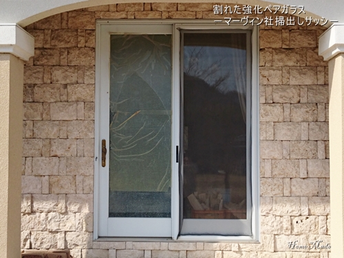 こちらは、マーヴィン(Marvin)社製の古い掃出しサッシ。フレンチ・スライディング・パティオ・ドアというシリーズのもので、標準的なスライディング・パティオ・ドアよりも高級感のある印象です。今回岐阜のお客様からのご相談は、鳥(バード・ストライク)又は石が当たったのか、ペアガラスの外側の強化ガラスが割れてしまったので、交換・修理が可能でしょうかというものでした。マーヴィンの窓の場合、通常ガラスだけを新しいものに交換して修理をするということはやりません。それは、ガラスの入れ替えをする際に薄いアルミの枠材が曲がってしまったり、仕込んである防水材を痛めてしまったりする恐れがあるので、建具(この場合、ドア)ごと交換することを推奨しています。勿論、自己責任でガラスを調達して交換することは可能ですが、メーカーは何ら保証をしてくれないのです。マーヴィンを含めて輸入サッシ・メーカーの窓は、北米で全て製作されますので、調達には3~4ヶ月程の時間が必要ですが、全く同じ新品ですから新築時の美しさが蘇ります。強化ガラスの外側だけが割れた状態ですから、内側のガラスだけで少しの間我慢して頂く必要がありますが、防犯や雨風の問題は何とかしのげると思います。是非これからも大切にお使い頂きたいものです。輸入住宅の新築やメンテナンス、コンサルやコーディネートをして欲しい、私と話をしたいという方は、お問い合わせ下さい。全国どこでもご相談を受け付けます。尚、相談や問い合わせの前には、日々更新する記事をいくつかご覧の上適否をご判断願います。