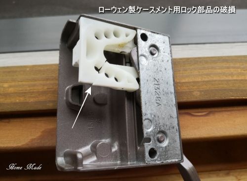 滋賀県のお客様から、ローウェン(Loewen)製ケースメントサッシ用ロック部品が破損したので、交換部品が欲しいという相談がありました。写真は、そのロック部品を外して裏返しにした状態ですが、ロック・キーパー(ロック受け)に引っ掛かる白いプラスチック部品が割れてしまっています。これが割れてしまうと、キーパーをガッチリ掴んで建具を引き込むことが出来なくなりますから、鍵は掛からなくなってしまいます。このロックが1つ付いているだけの窓だと、これが壊れると防犯性に影響しますが、ロックが2つの時1つが壊れると建具の引き込み具合が均一でなくなり、引き込み方に歪みが生じます。そうなると、開閉金物やヒンジにも影響が出て、窓が傾いて動くなんてことにもなりますから、取り敢えず鍵が掛けられるからと放置しないで、早めにこの部品を交換することが必要です。また、最近ではこのロック部品が改良されて、ロック・キーパーの形状も少し変わりましたから、キーパーも同時に交換することを忘れないで下さいね。キーパーの取付け位置も微妙に変化しますから、よく注意して正しい位置に固定することが大切です。輸入住宅の新築やメンテナンス、コンサルやコーディネートをして欲しい、家全般のチェックやアドバイスを受けたいので、現地調査を希望するという方は、お問い合わせ下さい。全国どこでもご相談を受け付けます。尚、相談や問い合わせの前には、日々更新する記事をいくつかご覧の上適否をご判断願います。また、これらの記事が、多くの皆さんのお役に立てて頂ければ幸いです。