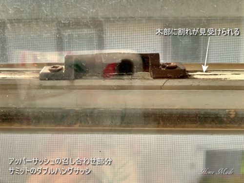 横浜のお客様から、サミット(Summit)社のアルミクラッド・ダブルハング・サッシの修理・メンテナンスについて相談を頂きました。ペアガラスの中に曇りや結露があり、いくつかの窓はガラスの交換が必要と考えているようですが、地元の輸入住宅メーカーやサッシ屋さんに相談しても、外壁から外して窓枠ごと交換するしかないと言われて困っているとのことでした。そこで、お客様からいくつかお送り頂いた写真の中の1枚が、こちら。アッパーサッシュ(上窓)の下枠部分で、ロック金物の受け側部分が写っています。ここは、窓を閉めた時、ボトム・サッシュ(下窓)と重なり合う召し合わせと呼ばれるところですので、窓を閉めてしまうと見えなくなってしまいます。こうして窓を開けた状態にしてみると、ロックの受け金物の辺りに塗装の剥がれや木部の割れがあるのが分かります。こういう状態は、木部に何らかの湿気や水分が入り込み、木を劣化させている可能性があると思います。ペアガラスが曇ったりしているということからすると、外部のアルミカバーの隙間から雨が内部に入り込んで、中から木枠を腐らせているというのが、原因のような気がします。現状は、木枠が黒く劣化してボロボロ崩れたりしてきているというところまではいっていないようですが、これを放置すれば何年か後に建具枠やガラスが徐々に脱落してくるかも知れません。サミットのサッシは、現在製造していない状況ですから、通常であれば窓ごと交換ということになる訳ですが、まだ不具合が小さいものについては、外周りの防水処理工事だけで何とかなるかも知れません。但し、その判断は、それぞれの窓によって異なります。既にガラス内に湿気等が入り込んでしまったサッシについては、シエラパシッフィック社のアップグレード・キットを使って、他社の新しい建具(障子)に入れ替えるという方法で修復出来ると思います。外壁からサッシを外して交換するのではなく、窓枠をそのままにしてその中にはめ込まれている建具だけを交換する訳ですから、外壁や室内の壁を傷めることもありません。ただ、綿密な寸法計測を行わないと、新しい建具が窓枠にうまく入らないということにもなりかねませんから、交換についての知識や経験が必要となります。(尚、この方法が取れるのは、ダブルハングに限られます)サミットやウェンコ(Wenco)は、元々雨仕舞に構造的な弱点がありますから、ペアガラスの中が冬になると曇るというおうちでしたら、窓を少し開けてこの召し合わせ部分をチェックしてみて下さい。勿論、下窓の下枠部分も同時にチェック出来るはずです。建具の木部に何等かのトラブルを発見したら、早めに専門家に相談するようにして下さいね。トラブルがない場合でしたら、サッシ自体の防水工事で将来のトラブルを予防出来ると思います。<関連記事>: これが出来るのは、日本でもホームメイドだけ (2019年8月6日)輸入住宅の新築やメンテナンス、コンサルやコーディネートをして欲しい、家全般のチェックやアドバイスを受けたいので、現地調査を希望するという方は、お問い合わせ下さい。全国どこでもご相談を受け付けます。尚、相談や問い合わせの前には、日々更新する記事をいくつかご覧の上適否をご判断願います。また、これらの記事が、多くの皆さんのお役に立てて頂ければ幸いです。