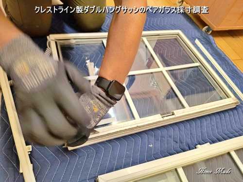 輸入サッシのペアガラスが割れてしまったということで、先日茨城県のお客様の輸入住宅にお邪魔してきました。サッシは、クレストライン(Crestline)製の樹脂ダブルハングサッシ。上げ下げ窓の下窓のガラスにクラックが入ってしまったということで50社以上コンタクトを取ったそうですが、どこに相談しても対応してもらえない状況だったそうです。樹脂サッシの場合、ガラスの周囲の押縁を外さなければ、ガラスの実寸法も分かりませんし、交換自体も出来ません。ただ、クレストラインの建具の押縁は、コーナー部分の納め方がイモではなく、留めという斜め45度でカットして納めてあるというやり方で、外す為には適切な道具と慎重な作業がないと、ガラスが更に割れたり押縁を損傷させたりしますから、普通のサッシ屋さんは手を出さないかも知れません。クレストラインは国内では入手不可ですから、押縁を壊してしまえば特殊なルートで輸入をしなければならず、修理代金よりも高く付いたり手間も半端なものでなくなる可能性があります。勿論、ペアガラスもインチ単位で出来ていますから、そういったものを作ってくれるメーカーも押えておく必要があります。ましてや、内蔵された飾り格子等は、以前の輸入ガラスと同じものが希望という場合、そういうディテイルにも拘らなければなりません。ということで、少々遠いですが、私共 ホームメイドが愛知県から茨城県まで出張して、ガラスの採寸調査を行ってきました。写真は、私が丁度押縁を外している様子です。格子のデザインや配置を合わせる為に、下窓のガラスだけでなく上窓のガラスも押縁を外して採寸してきました。勿論、採寸後は建具を元通りに戻して、窓にちゃんと装着してきましたよ。これから見積をご提示して、OKを頂きましたら手配の方を進めていきたいと思います。また修理の様子は、後日ブログ記事でご紹介します。輸入住宅の新築やメンテナンス、コンサルやコーディネートをして欲しい、家全般のチェックやアドバイスを受けたいので、現地調査を希望するという方はお問い合わせ下さい。全国どこでもご相談を受け付けます。尚、相談や問い合わせの前には、日々更新する記事をいくつかご覧の上適否をご判断願います。また、これらの記事が、多くの皆さんのお役に立てて頂ければ幸いです。